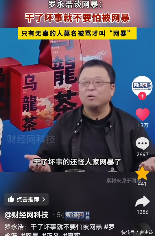 偶然哭惨的俞洪敏也没念念到,这则控诉不仅没能换来网友们的同情,反而令网友们愈加“茂盛”,随之而来的,是新华社转发的一则“打铁”视频,和财经网转发的“罗永浩谈网暴”,获胜将他架在火堆上烤。
