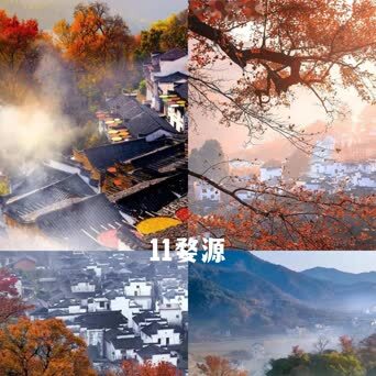 特质:金黄稻田与徽派古村交相照映,晒秋盛景花花绿绿。