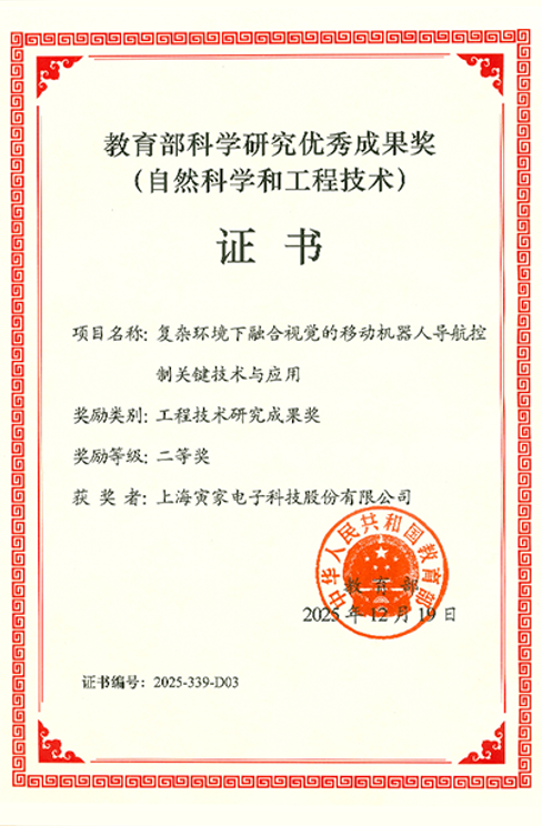 近日,寅家科技凭借“复杂环境下会通视觉的移动机器东谈主导航甘休关节工夫与利用”技俩,取得教悔部科学缱绻优秀恶果奖(工程工夫缱绻恶果)二等奖。该奖项在高校及科研体系中评审严格,这次获奖体现了寅家科技在工程工夫研发层面的塌实蕴蓄。