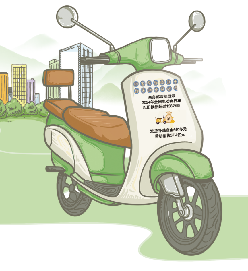A:从浮滥端看,2024年电动自行车行业62.1%的浮滥需求来自于替换。商务部数据泄漏,2024年宇宙电动自行车以旧换新逾越138万辆,带动销售37.4亿元。