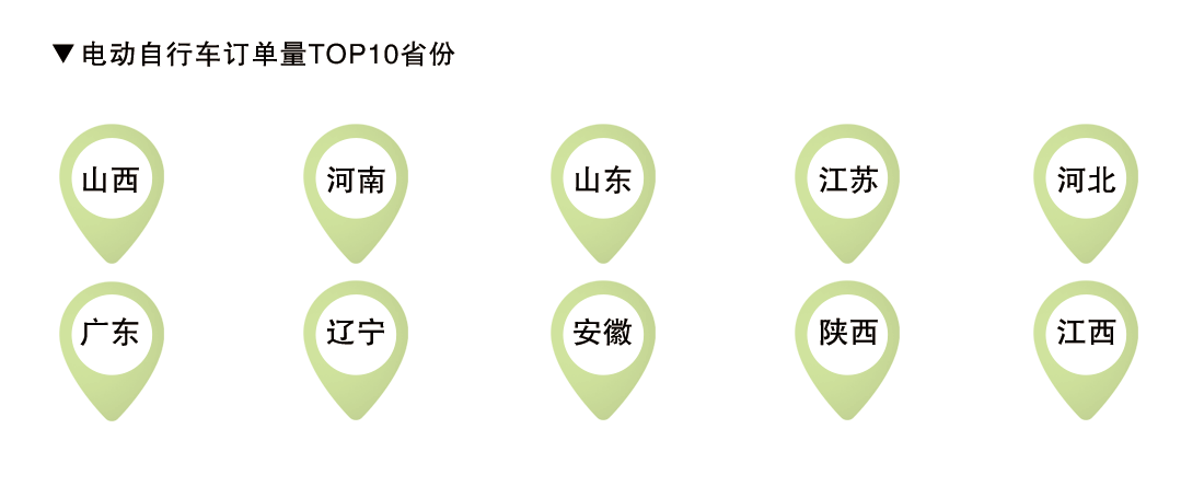 A:山西、河南、山东、江苏、河北等省份为电动自行车订单量较为靠前的省份。
