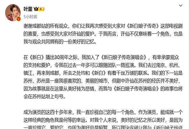 “许仙”要和《新白娘子传闻》演唱会“离异”了?这音书一出,只怕不少东说念主的芳华回忆得随着抖三抖。叶童一句“止于苏州”🦄开云彩票(中国)官方网站,是情感收场,照旧另有隐情?