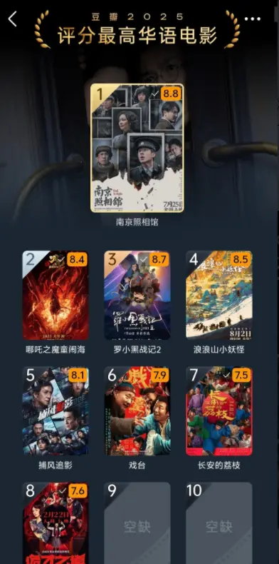 看到这份榜单的时分,许多网友齐忍不住问:为什么唯一8部电影入围,因为本年播出的电影,唯一8部评分在7.5分以上,全球齐以为影片市集插足“穷冬”,但《哪吒之魔童闹海》的出现,让咱们发现,高质地的影片,必定会取得心思,比拟之下,大部分的影片,齐莫得取得认同,是以7.5分的电影唯一8部。