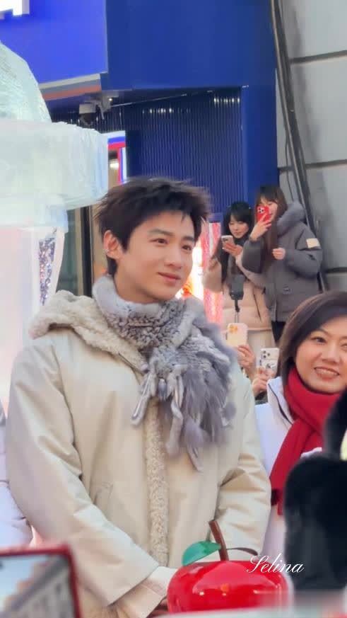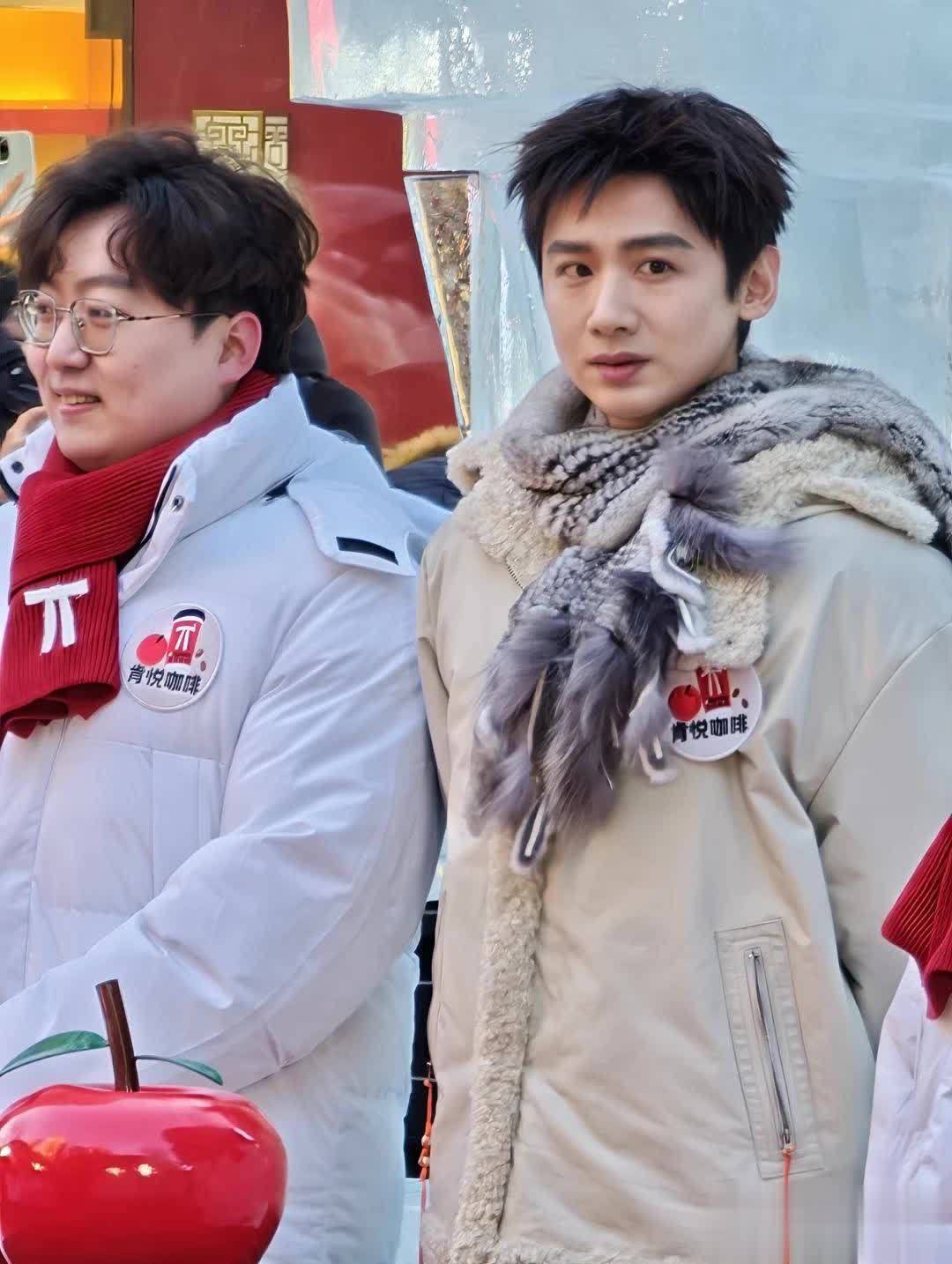 可能是东北的低温环境让脸部有些浮肿,才显得脸宽腮大,和平时精修图里的清癯形象酿成了显着对比。
