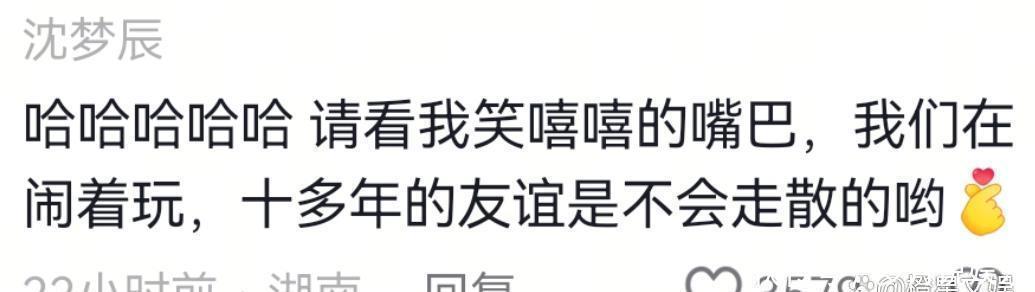 1月2日,沈梦辰终于亲身下场回复。她示意,那时两东说念主照实是在“闹腾”,并非发生争执,还成心强调我方嘴角永久带着笑意。关于外界的权衡,她用一句话轻轻带过:十几年的交情,不会因为这种片断就散场。