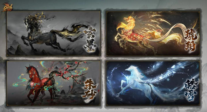 此次的主题是“水墨”。四匹神骏——圣武神骏·玄墨、流光神骏·琥珀、灵犀神骏·朱砂、冰星神骏·皓雪,从名字到造型,齐透着一股文东谈主古画的好意思丽与力谈。