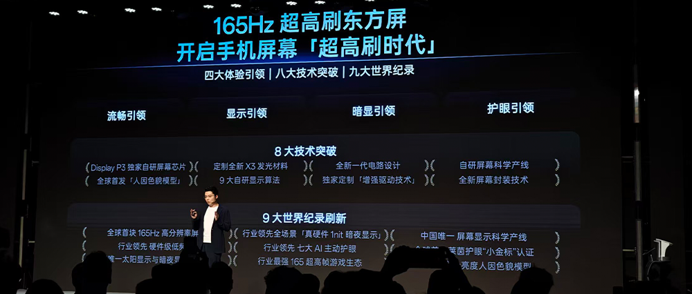 举座来看,第三代东方屏主要在通顺度、执行成果、暗光露馅、护眼四个方面进行了要点升级。这块165Hz高刷屏据称收场了8项关节时候的冲破,刷新了9项宇宙记录。